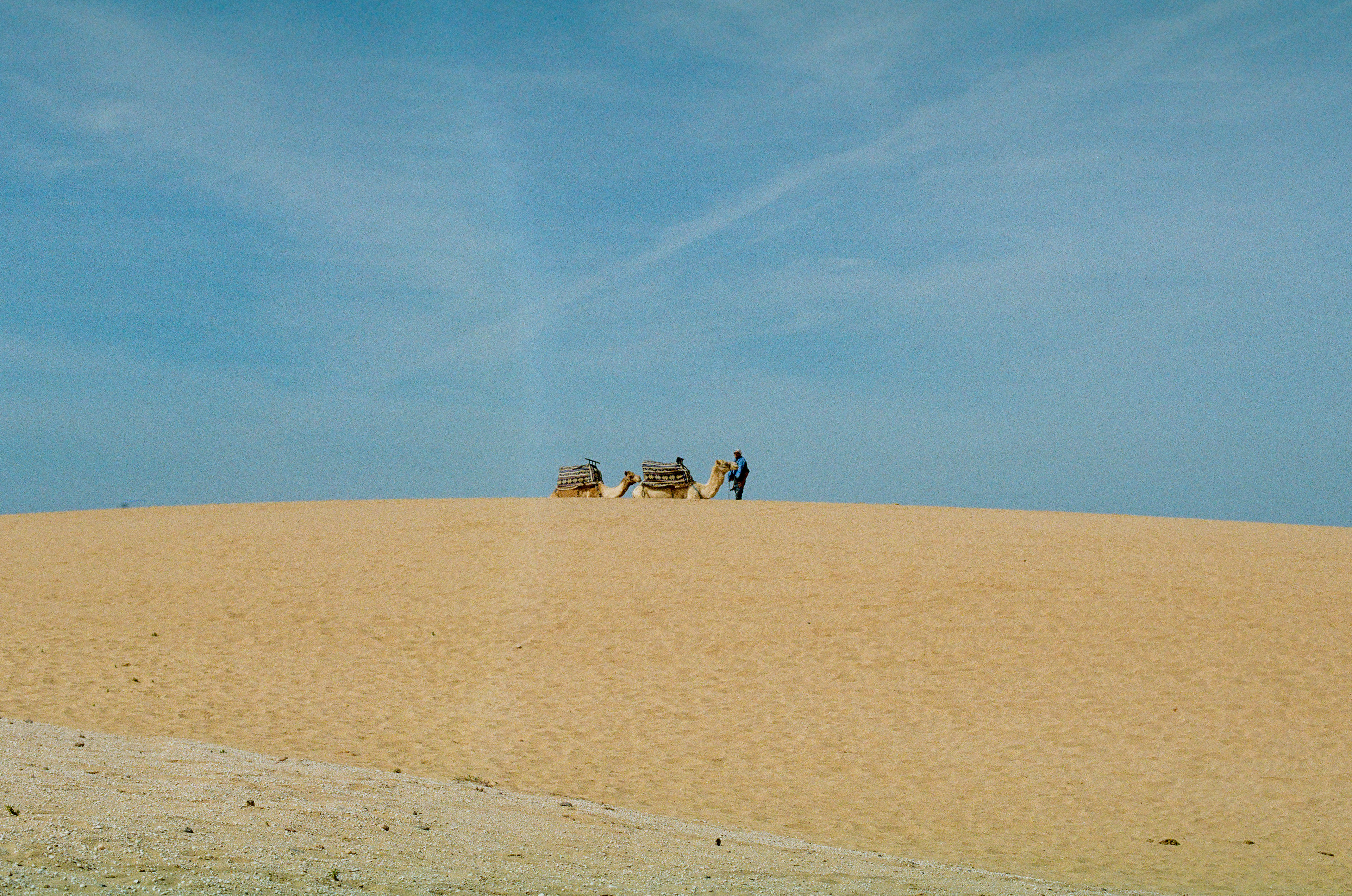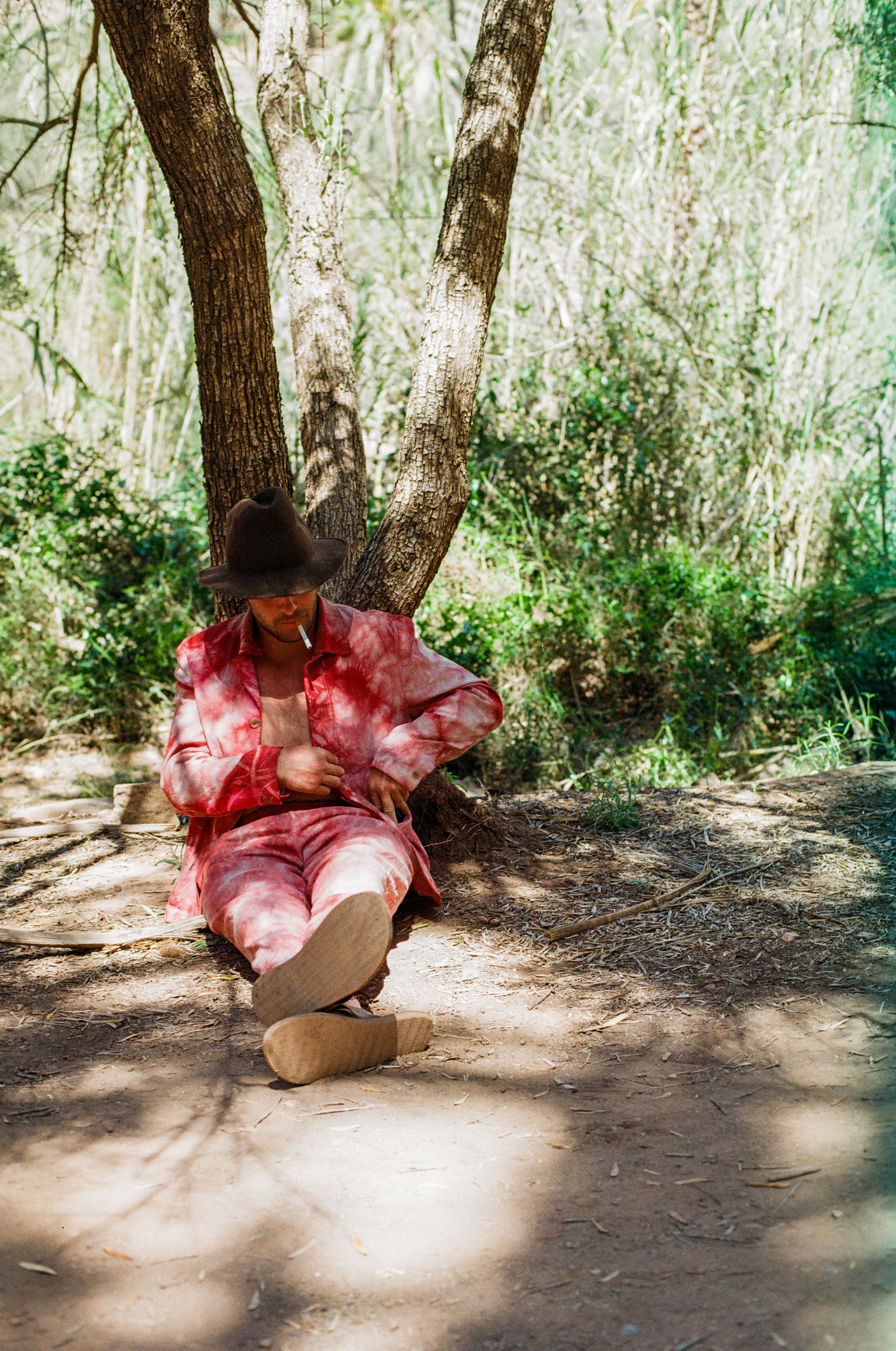 After creating a series of stained linen suits, I captured a few friends modeling them against the backdrop of Morocco's sand dunes.